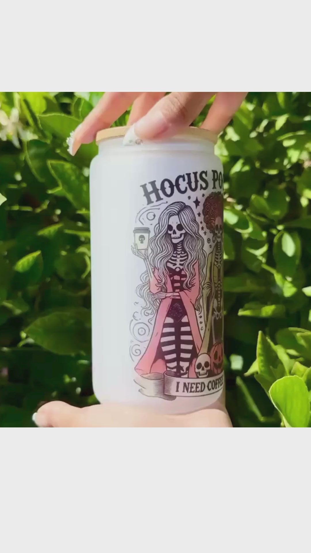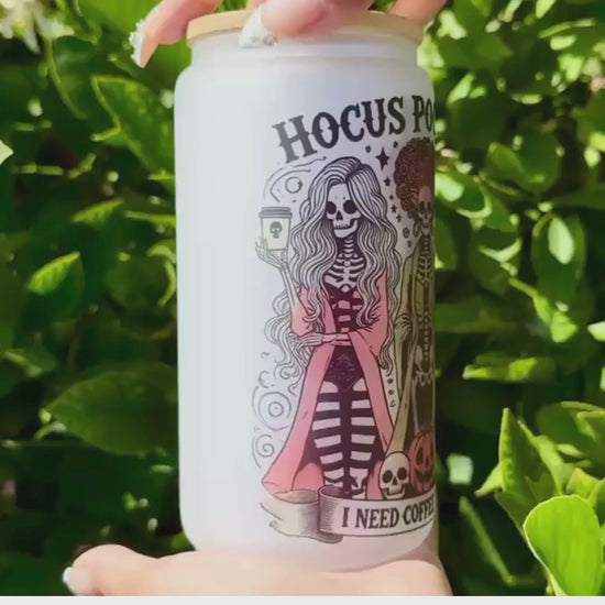 Sip in style with this is 16oz Hocus Pocus FROSTED Glass Cup! Complete with a charming bamboo lid and a reusable plastic straw, this cup is ready to keep your drinks magical and eco-friendly. Perfect for casting a spell on your thirst while helping the planet—cheers to sipping sustainably and having fun doing it!